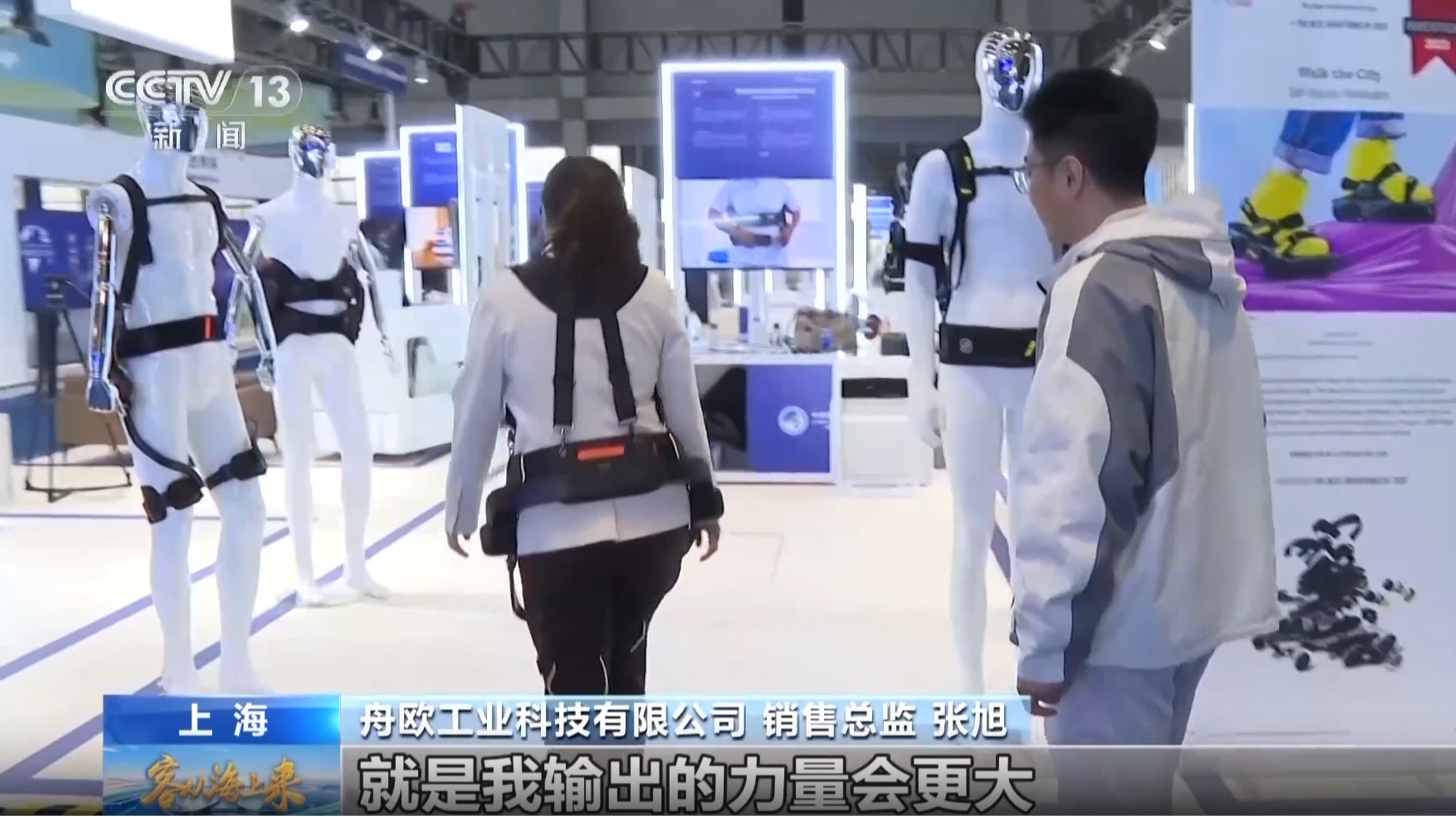 Zhang Xu, Diretor de Vendas da Zhouou Industrial Technology Co., Ltd., apresentou aos repórteres da CCTV na exposição: “O exoesqueleto auxiliar pode ser usado por idosos para escalar montanhas, subir escadas e até mesmo fazer algum treinamento de reabilitação.” Este robô exoesqueleto, como um dispositivo mecânico vestível , funciona em coordenação com as articulações humanas por meio de sensores, capteo com precisão o usuário intenções de movimento das pernas e fornecendo assistência automaticamente enquanto caminha , melhorando fundamentalmente a experiência do usuário mobilidade . Na área de experiência de exposição, Zhang Xu ajudou um repórter coloque o exoesqueleto do robô em apenas um minuto . Quando o repórter se levantou e deu alguns passos, o aparelho respondeu imediatamente , proporcionando suporte em sincronia com os movimentos das pernas. “Parece que minhas pernas estão sendo empurradas para frente” disse o repórter. Zhang Xu respondeu: “Sim, facilita muito, principalmente para os joelhos.”