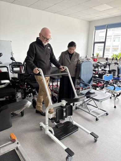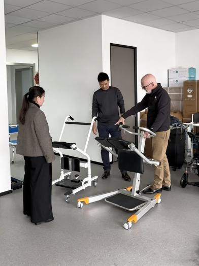 Acompanhado por nossos diretores relevantes, o Sr. James discutiu dois modelos de elevadores multifuncionais para transferência de pacientes, inspecionou cuidadosamente estruturas de amostras e conduziu testes no local.