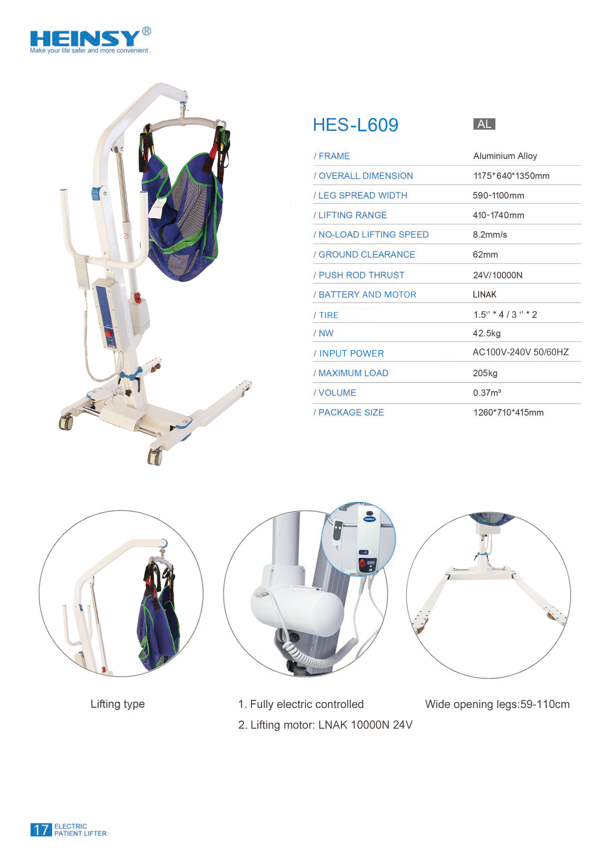 Como nosso produto estrela, o elevador totalmente automático L609 ganhou elogios de James por seu desempenho superior e design fácil de usar. Ele utiliza um motor LINAK para operação estável e confiável. O sistema de controle elétrico é fácil de usar, facilitando muito a experiência do operador para os cuidadores . A largura ajustável da abertura das pernas de 59-110 cm permite uma adaptação flexível a vários cenários. O potente motor de elevação LINAK 10000N 24V garante operações de elevação seguras e suaves. ( Ambas as pernas oferecem uma distância ao solo ultrabaixa de 6,2 cm, permitindo uma adaptação suave a vários cenários de cama baixa. )