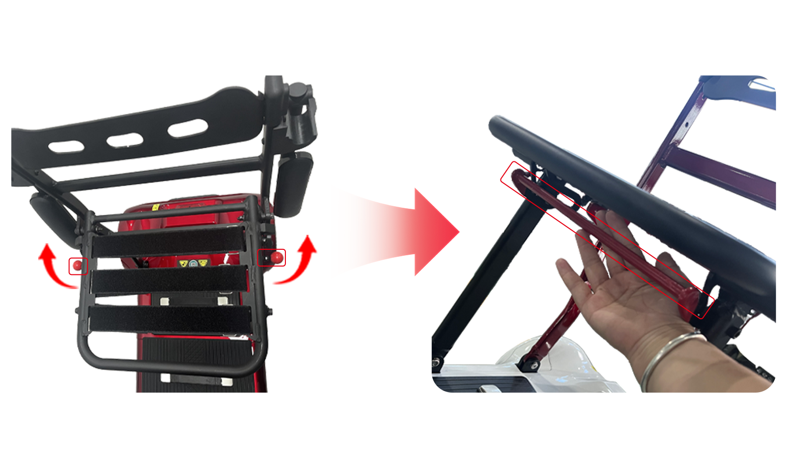 O método de dobramento com as duas mãos da versão original pode ser inconveniente para usuários com força limitada ou com uma mão. A versão atualizada apresenta um inovador “mecanismo de dobramento com um toque e uma mão”**. Basta pressionar a trava de rebatimento do assento com uma mão para dobrar a estrutura e o assento simultaneamente em 10 segundos. O tamanho compacto e dobrado torna mais fácil para os idosos que vivem sozinhos fazerem as malas ou para os membros da família guardarem no porta-malas de um carro, conseguindo realmente “armazenamento leve para uma viagem conveniente”.